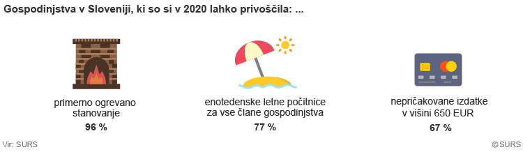 S svojimi dohodki je leta 2020 brez težav preživelo mesec 21 odstotkov gospodinjstev. Nepričakovane izdatke v višini 650 evrov bi v letu 2020 lahko poravnalo 67 odstotkov gospodinjstev.