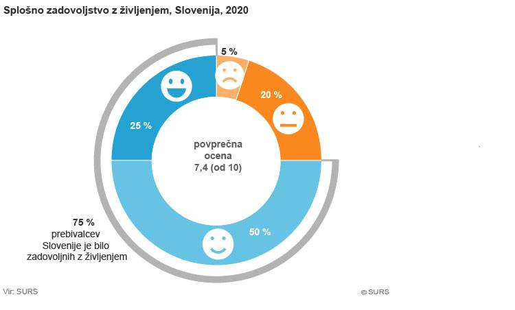 Povprečna samoocena zadovoljstva z življenjem na lestvici od nič (povsem nezadovoljen) do deset (zelo zadovoljen) se je v primerjavi z letom poprej znižala za 0,1 vrednosti ocene (s 7,5 na 7,4).