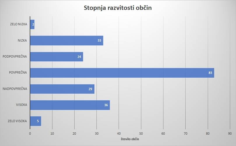 Občine so razvrstili glede na stopnjo razvitosti v naslednje kategorije: zelo nizka razvitost, nizka razvitost, podpovprečna razvitost, povprečna razvitost, nadpovprečna razvitost, visoka razvitost in zelo visoka razvitost. Celoten seznam občin si lahko pogledate na naslednji povezavi.