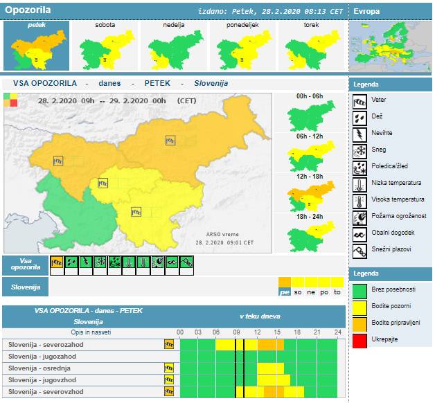 Arso je tako predvsem za severozahodni in severovzhodni del države izdal opozorilo z oranžnim alarmom.