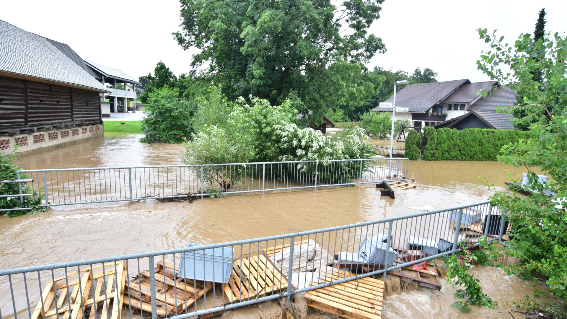 Poplavlja tudi Mura, a zaenkrat znotraj protipoplavnih nasipov. Poplavljanje hudournikov gre pričakovati še tekom popoldneva in v noči na soboto, umiranje razmer pa šele v nedeljo.
