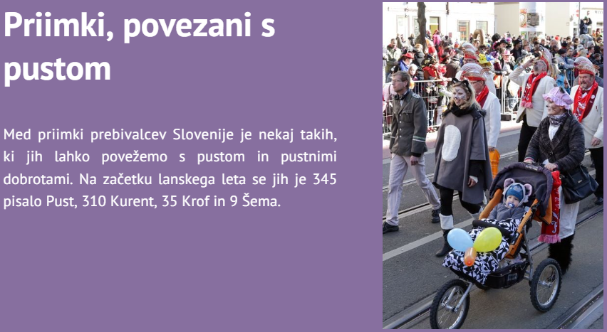 Na začetku lanskega leta je bilo 345 oseb s priimkom Pust, 310 oseb s priimkom Kurent, 35 oseb s priimkom Krof in devet oseb s priimkom Šema.