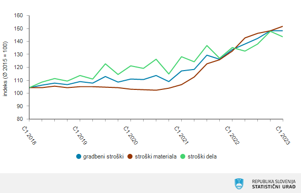 V prvem četrtletju so bili gradbeni stroški za nova stanovanja višji kot v četrtletju pred tem in tudi v istem četrtletju lani – v prvem četrtletju so bili za 0,1 odstotka višji kot pred tem, v primerjavi z istim četrtletjem prejšnjega leta pa so zrasli za 10,8 odstotka.