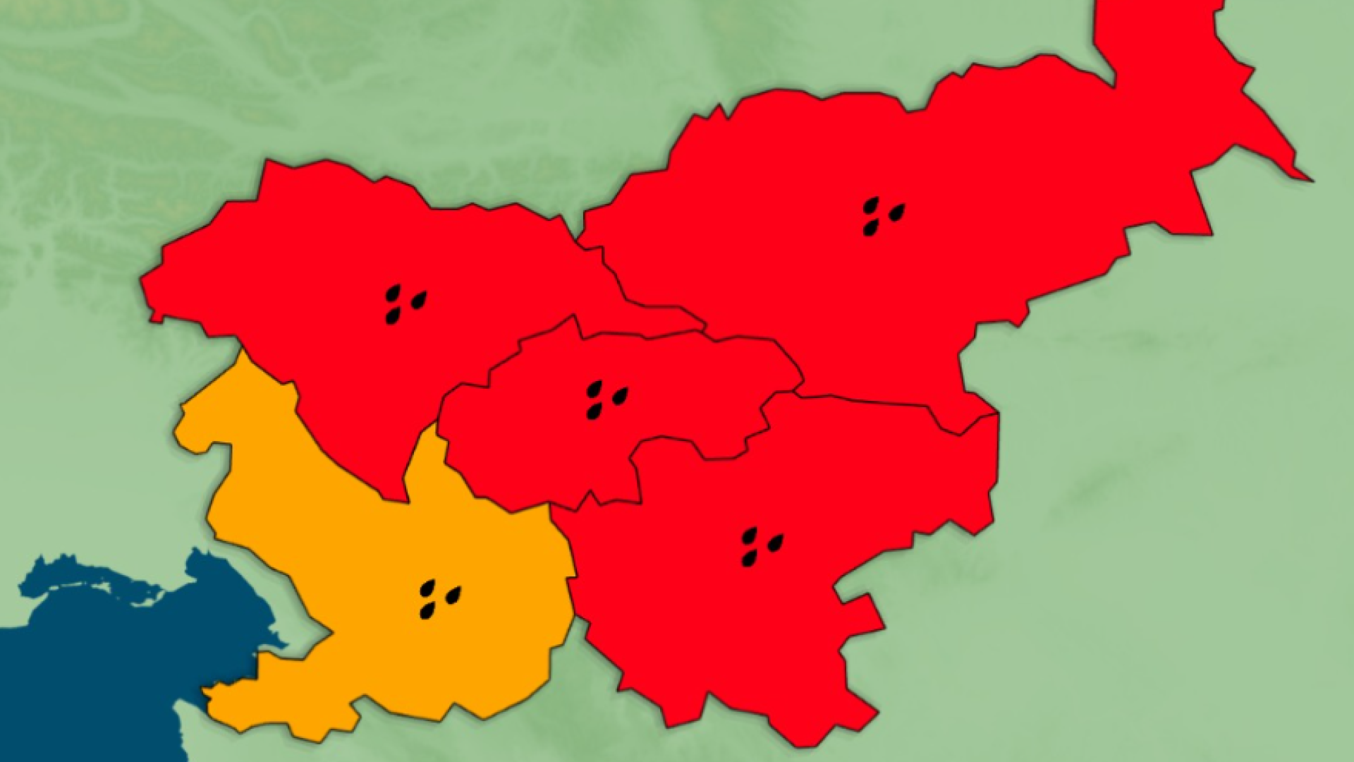 Agencija Republike Slovenije za okolje je izdala rdeče opozorilo za skoraj celotno Slovenijo.