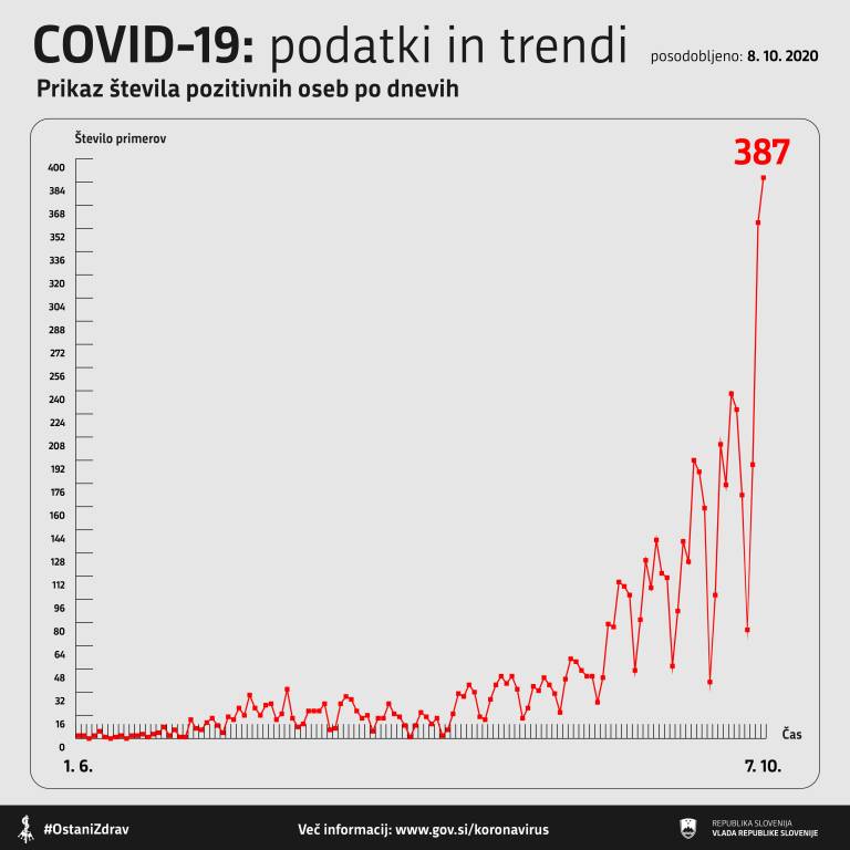 Za primerjavo: Dan prej so ob 3998 testiranjih potrdili 356 novih okužb, kar je bilo tudi največ doslej.