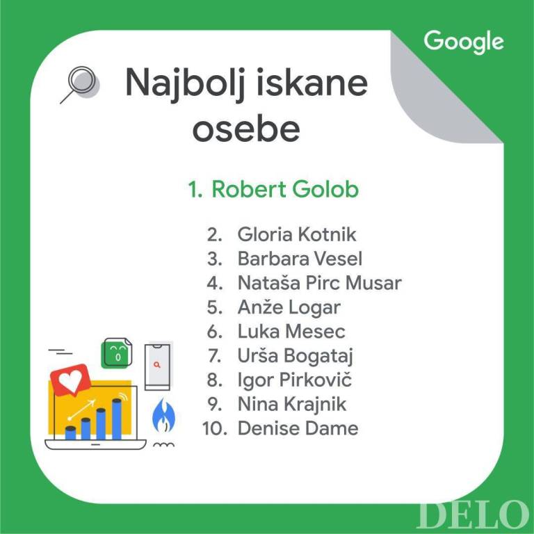 Google je za Slovenijo izpostavil tudi najbolj iskane osebe v Sloveniji. In sicer je to postal Robert Golob, ki mu za petami sledi olimpijka Gloria Kotnik in Barbara Vesel.