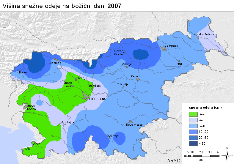 Agencija Republike Slovenije je izdala primerjavo višine snežne odeje na božično jutro, vse od leta 1961 naprej.