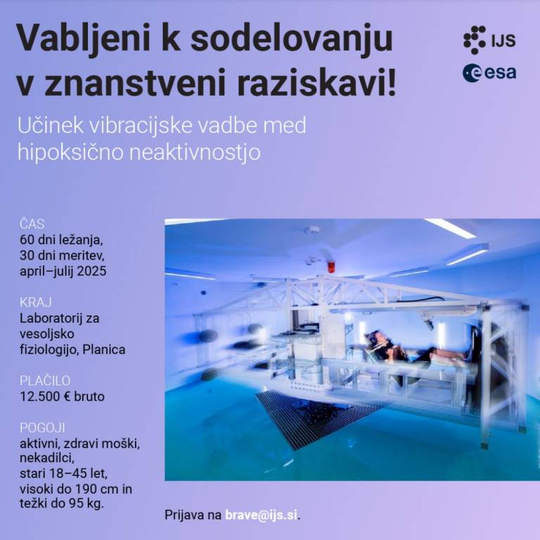 Institut Jožefa Stefana vabi k sodelovanju v drugi krog raziskave 'Učinek vibracijske vadbe med hipoksično neaktivnostjo'.