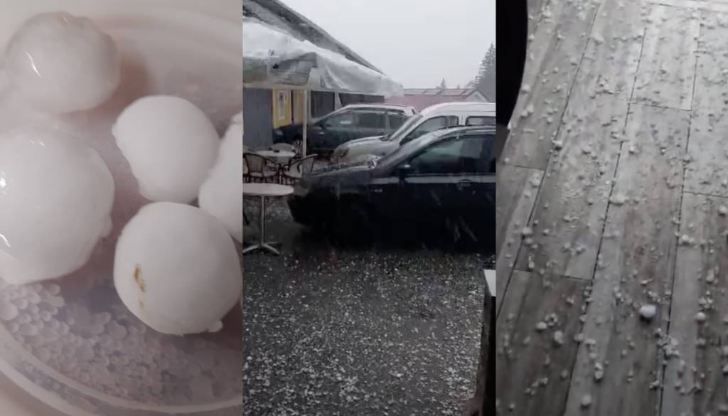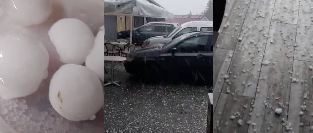 Čez Loški Potok se je malo po deveti uri pomaknilo že drugo neurje danes, poročajo na Meteoinfo Slovenija, klestila je kot oreh debela toča.