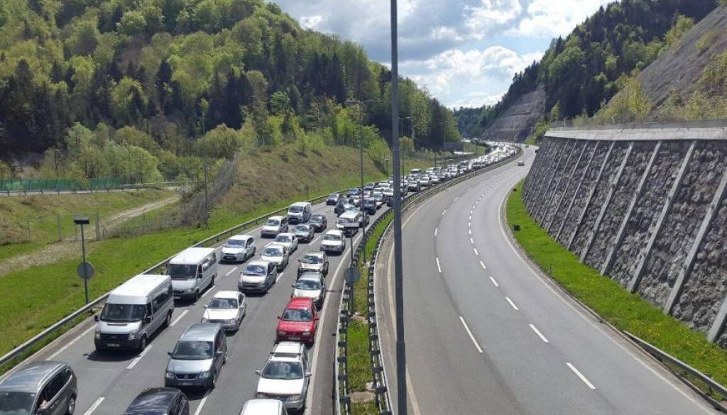 Sicer pa bodite pozorni, saj je pred mejnim prehodom Šentilj iz Avstrije proti Sloveniji en kilometer dolg zastoj, na podravski avtocesti pred mejnim prehodom Gruškovje proti Hrvaški pa štiri kilometre dolg zastoj.