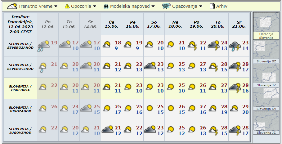 Obetavnejša je tudi modelska napoved agencije za okolje za naslednjih deset dni, ki kaže, da bo po celotni Sloveniji pretežno oblačno, nevihte pa (za zdaj) niso napovedane.
