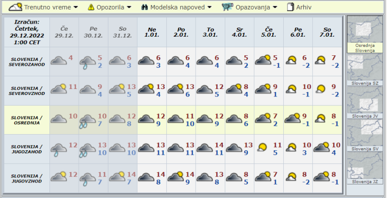Za novo leto so sicer tudi oni napovedali višje temperature, a se te čez dan gibljejo nekje med deset in 13 stopinj Celzija in ne 17 stopinj, kot je napovedal Šter.