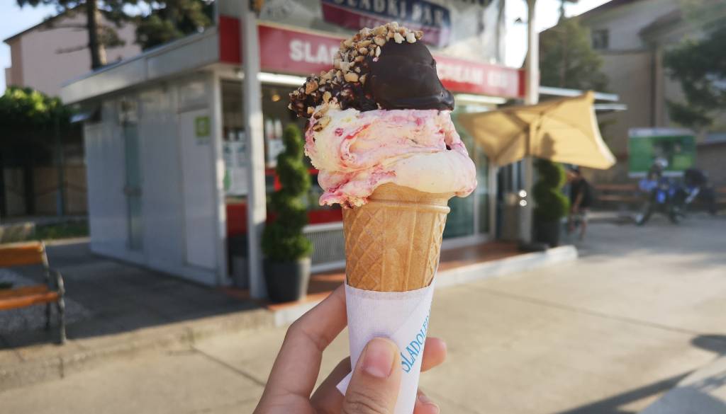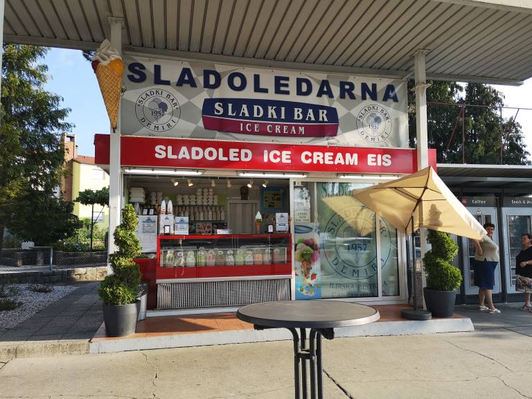 Govorimo o sladoledarni Sladki bar, ki je oživela prostor nekdanje bencinske črpalke v Ilirski Bistrici. Ogromno kepico okusnega sladoleda, obloženega in prelitega z razno raznimi dodatki, boste z užitkom lizali vse do meje s Hrvaško in še naprej.