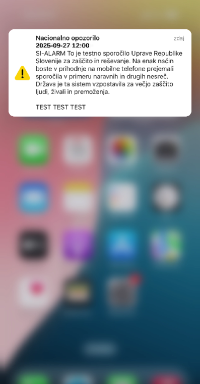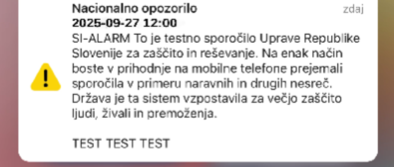 »Na ta dan bomo vsi uporabniki mobilnih telefonov, priključeni na slovenska mobilna omrežja, prejeli testno opozorilno potisno sporočilo.