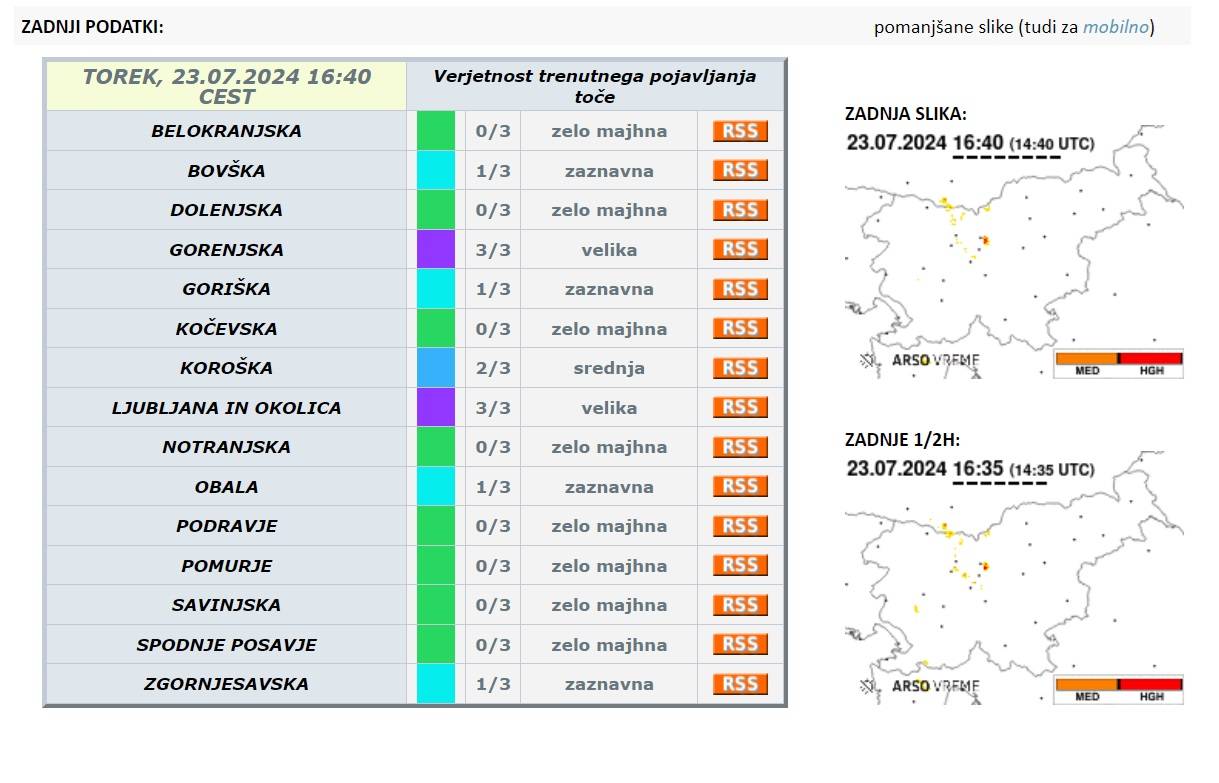 Nevihte bodo s seboj prinesle tudi nalive in nekaj sunkov vetra, vendar nevihtni sistem ne zgleda tako izrazit, je za STA pojasnil dežurni meteorolog na Agenciji Republike Slovenije za okolje (Arso) Brane Gregorčič.
