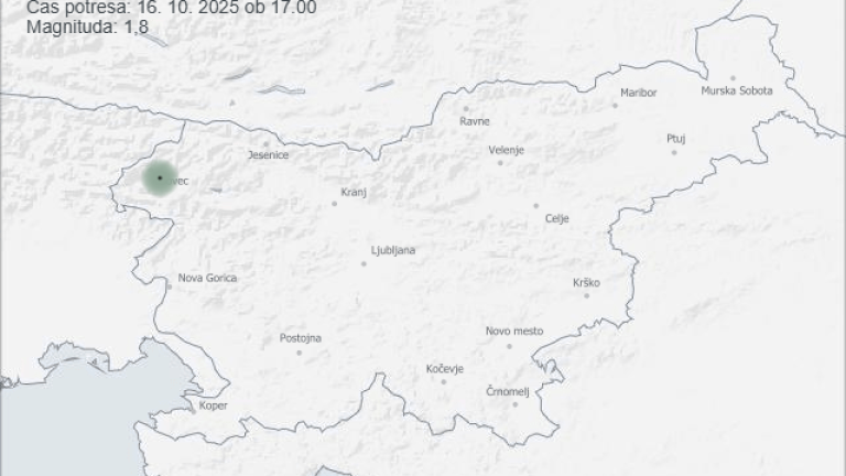 Seizmografi državne mreže potresnih opazovalnic so danes ob 17. uri zabeležili šibek potresni sunek, magnitude 1,8.