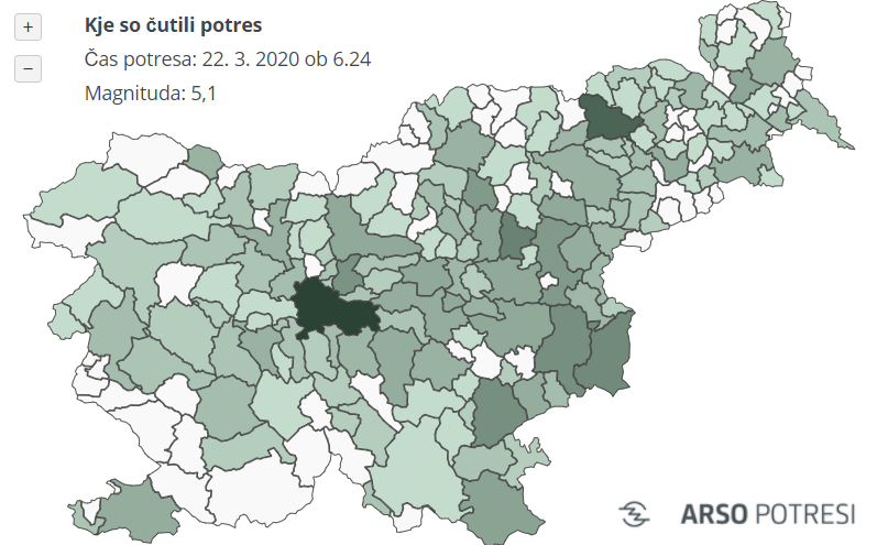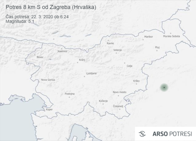 Seizmografi državne mreže potresnih opazovalnic so danes ob 6.24 zabeležili potres magnitude 5,1. Epicenter je bil 110 kilometrov vzhodno od Ljubljane, v bližini Zagreba. Potres so čutili prebivalci celotne Slovenije, so sporočili iz urada za seizmologijo agencije za okolje.