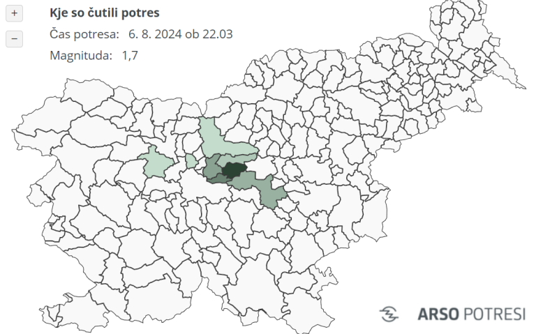 V torek, 6. avgusta, ob 22.03 so seizmografi državne mreže potresnih opazovalnic zabeležili potres magnitude 1,7 v bližini Domžal, 16 kilometrov severovzhodno od Ljubljane.