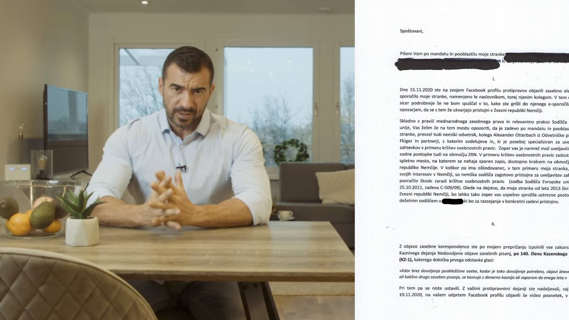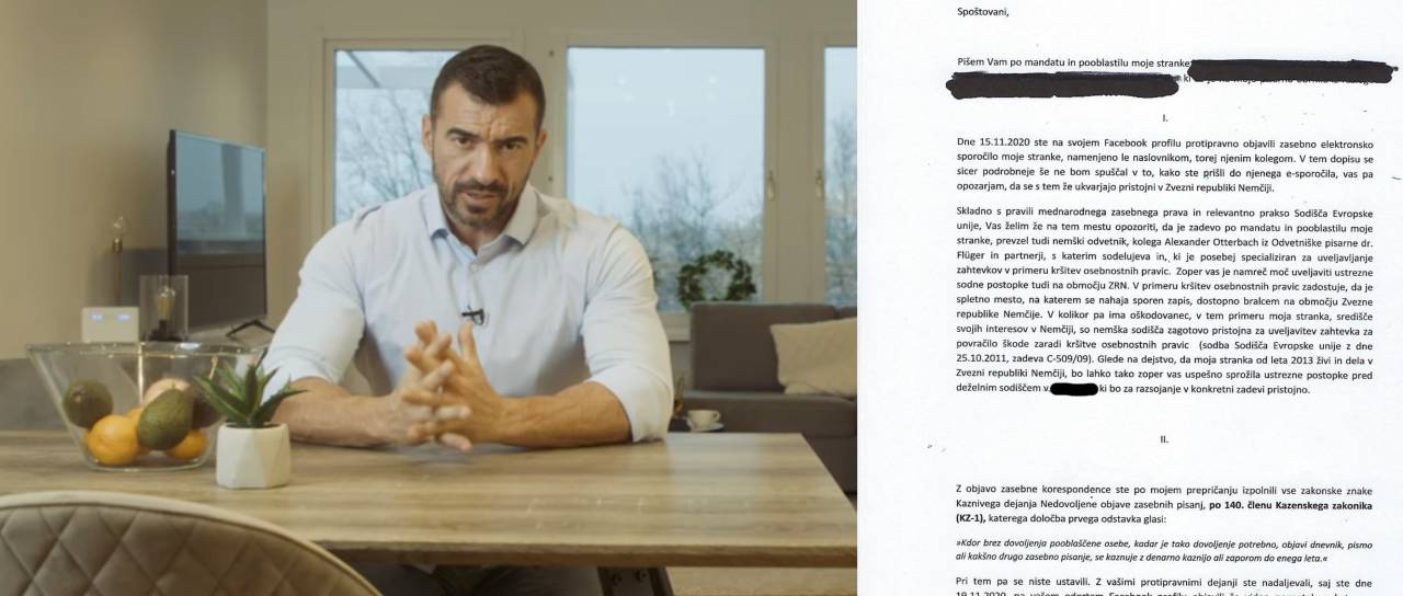 »Verjamem in vem, da se zavedate, koliko sledilcev imate na svojem odprtem profilu Facebook strani, torej ste se posledično zavedali oziroma bi se vsaj morali zavedati, kakšen odmev bo imelo protipravno objavljeno pismo ter nato še objavljena vsebina video posnetka v slovenski javnosti,« piše med drugim v opominu pred tožbo.