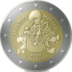 Na kovancu bodo upodobljeni junaki stripov Mikija Mustra: Zvitorepec, Lakotnik in Trdonja. Kovanec bo nosil letnici »1925« in »2025«, ime »Miki Muster« ter 12 zvezd evropske zastave.