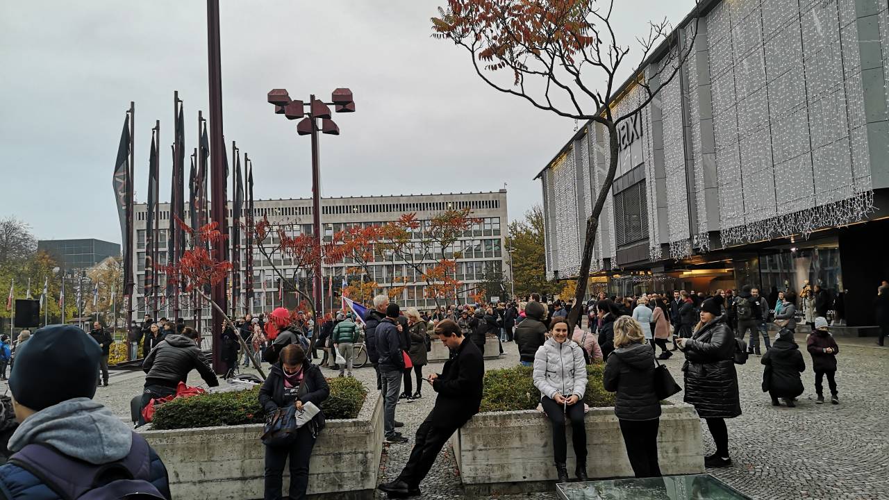 15.30 - Na Trgu republike se je že zbralo nekaj protestnikov.
