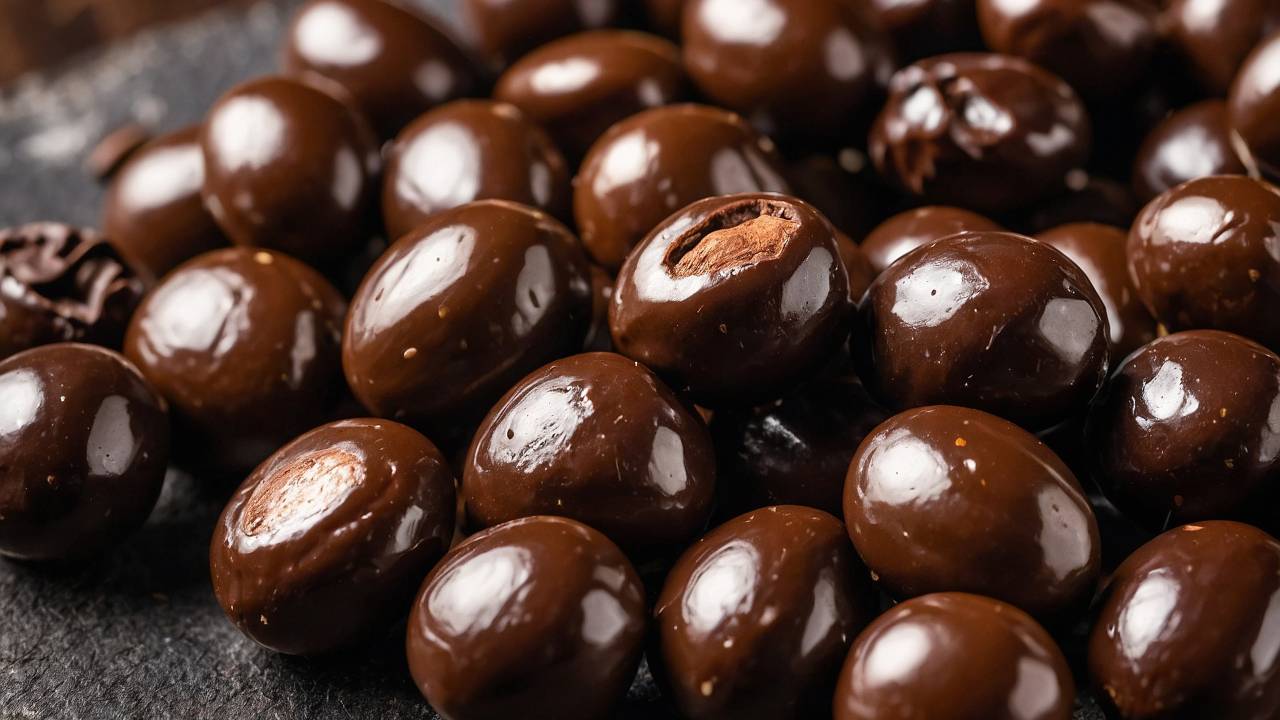 Odpoklic kroglic iz suhega sadja s kakavovim nadevom in prelivom.