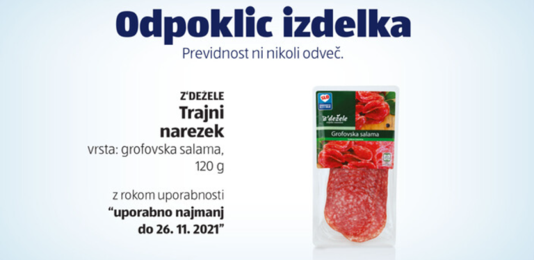 Ste kupili to salamo? Povzroči lahko okužbe sečil in črevesja, med odpoklici pa ni edina