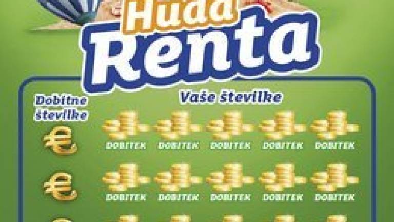 Srečka Huda Renta prinaša 10.000 evrov takoj in 1.000 evrov mesečne rente, srečka Mega Huda Renta pa kar 60.000 evrov takoj in 2.000 evrov mesečne rente.