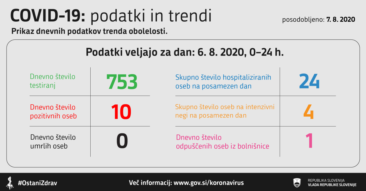 Včeraj, 6. avgusta 2020, so v Sloveniji opravili 753 testiranj na novi koronavirus.