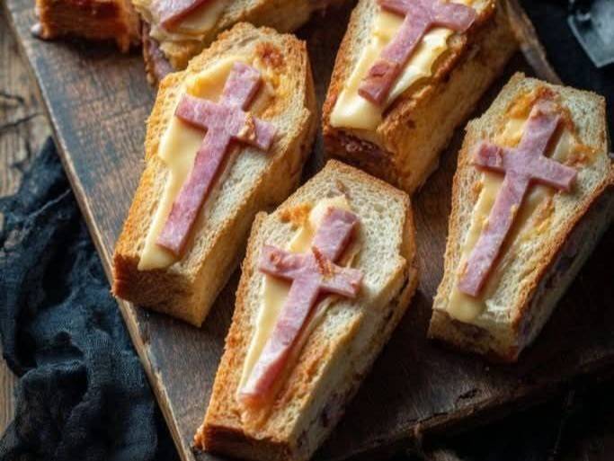 Iz toasta izrežite obliko krste in ga napolnite s sirom ter salamo. Na vrh položite križ, ki ga izrežete iz rezine salame. Sendviče popecite v pečici ali v toasterju, da se sir znotraj lepo stopi.