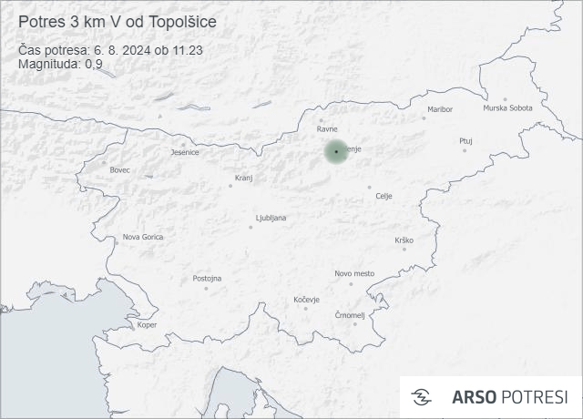 Žarišče šibkega potresnega sunka magnitude 0,9 je bil po prvih podatkih tri kilometre vzhodno od Topolšice, v bližini Velenja.