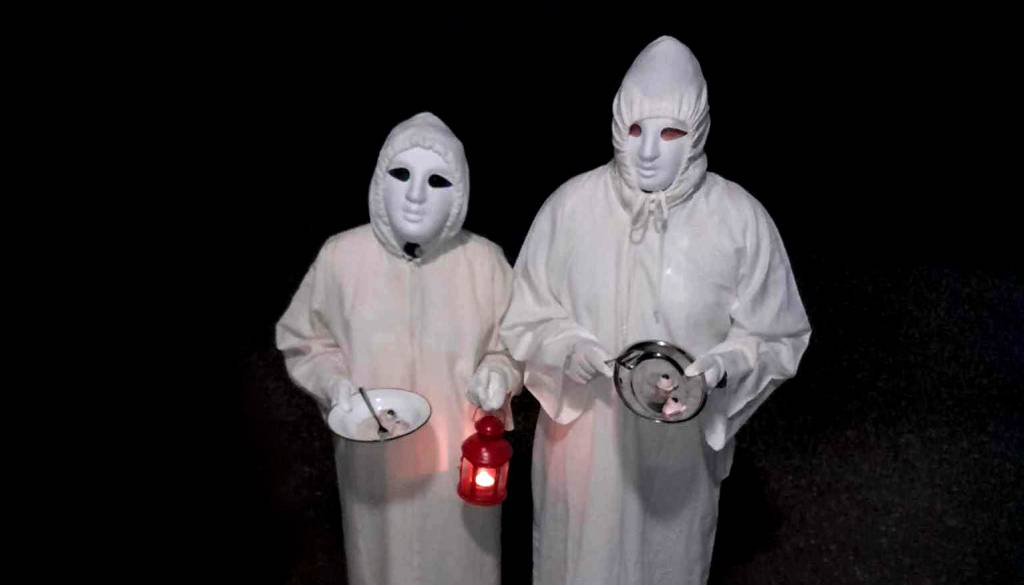 Praznovanje svete Lucije pogosto vključuje ženske, oblečene v belo, ki s pladnjem, očmi in koso ali vilicami obiskujejo otroke.