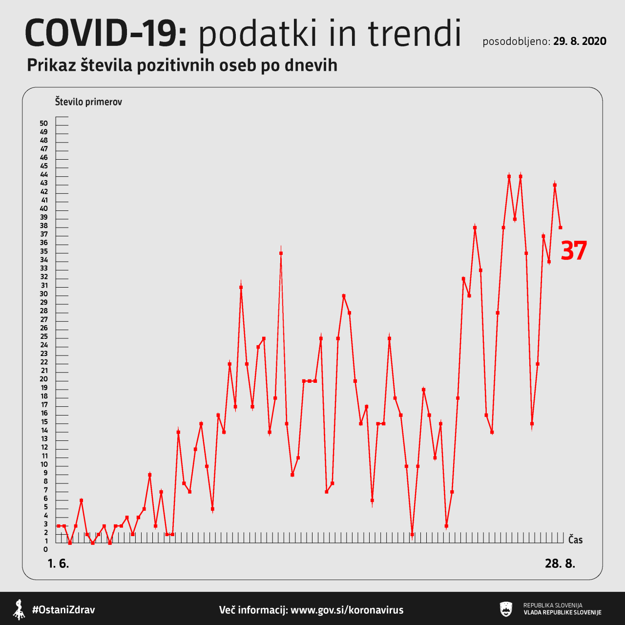 V Sloveniji so včeraj, 28. avgusta, opravili 1328 testiranj na novi koronavirus. Potrdili so 37 novih okužb.