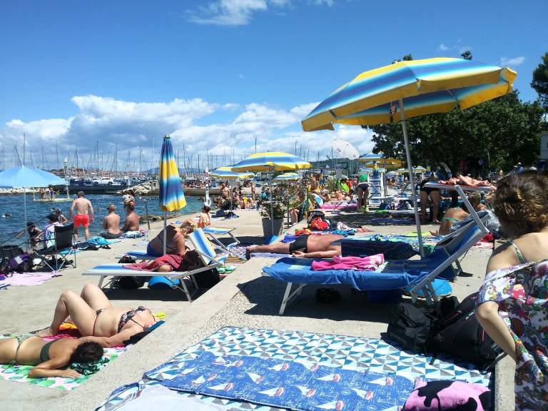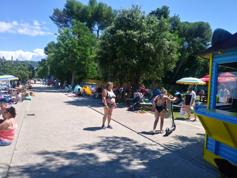 Tudi njen komentar je na mestu: »Ljudje ležijo kot sardine v konzervi.« Je slednje po koronastandardih?