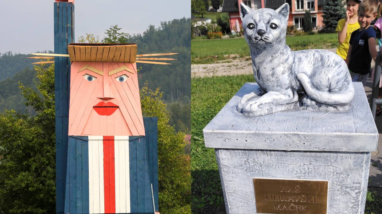 V občini Moravče, kjer je pred leti stal tako imenovani slovenski Kip svobode, ki spominja na ameriškega predsednika Trumpa, so zdaj postavili obeležje mačku.