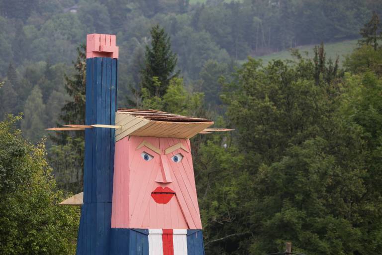 Spomnimo. V občini Moravče je leta 2019 zatočišče našla skulptura Kipa svobode, ki spominja na ameriškega predsednika Donalda Trumpa. Približno osem metrov visoko leseno skulpturo so postavili člani Športnega in kulturnega društva Sela.