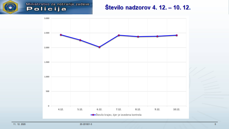 Povedala je še, da so »v obdobju od 30. novembra do vključno 6. decembra inšpekcijski organi opravili 1921 nadzorov nad obvladovanjem covid-19, izrekli pa 28 prekrškovnih sankcij in 218 opozoril po zakonu o prekrških ter 66 upravnih ukrepov.«