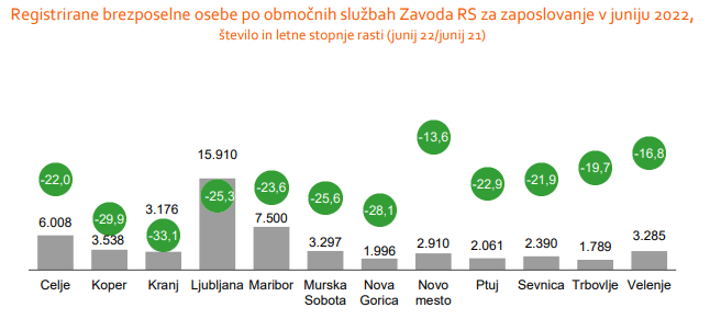 Na letni ravni pa največje zmanjšanje brezposelnosti še naprej beleži območna služba Kranj, ki je brezposelnost zmanjšala kar za tretjino, sledi ji Koper s slabimi tridesetimi odstotki.