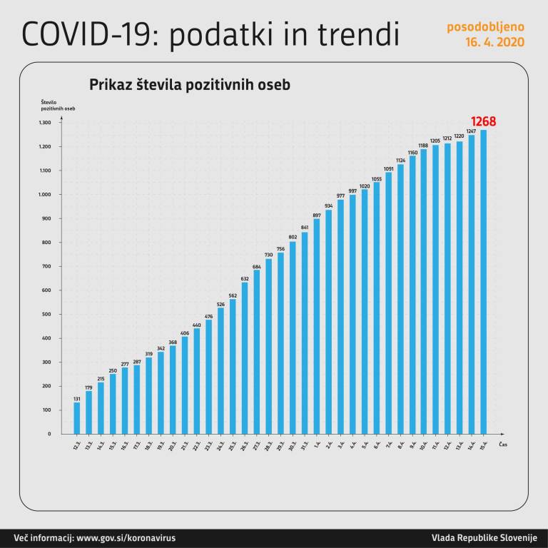 Pozitivnih je bilo 21 ljudi. Skupno število okuženih s koronavirusom tako zdaj znaša 1.268.