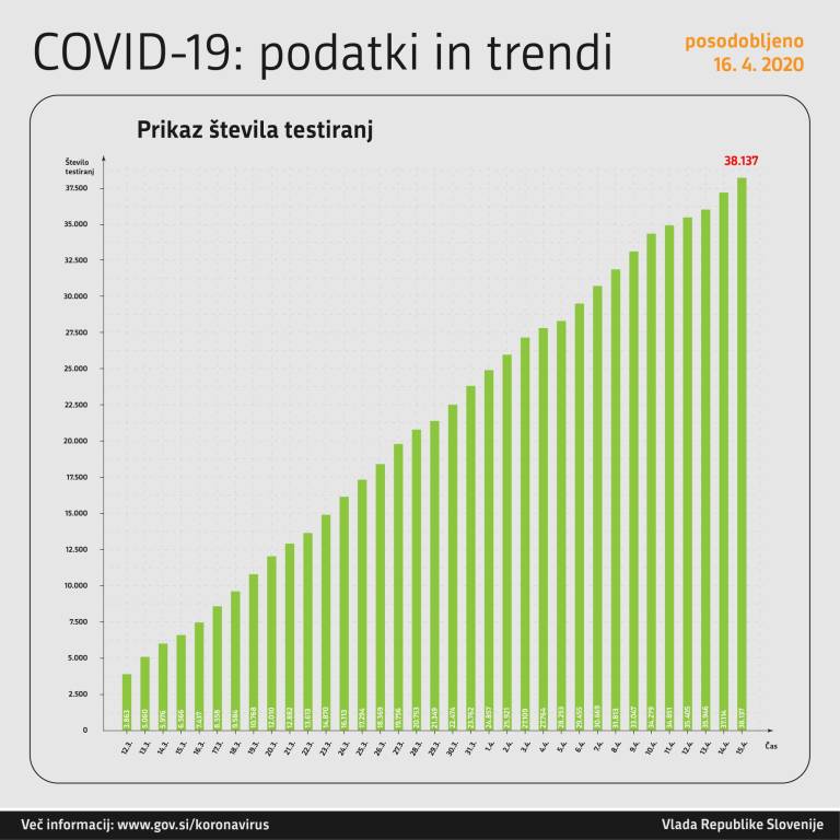 Včeraj, 15. aprila, so v Sloveniji opravili 1.023 testiranj za koronavirus.