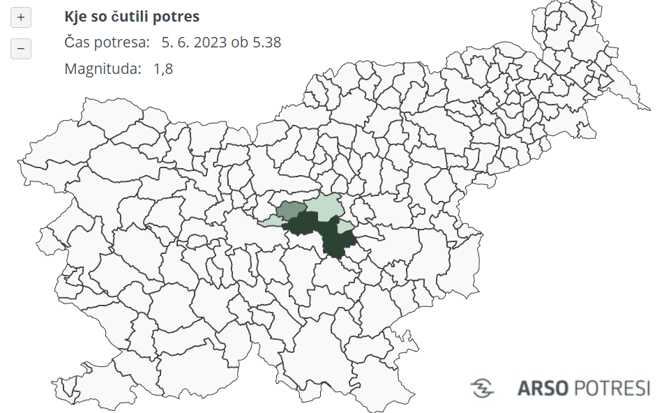Seizmografi državne mreže potresnih opazovalnic so v ponedeljek, 5. junija 2023, ob 5.38 zabeležili šibek potresni sunek, magnitude 1,8. Po prvih podatkih je bilo žarišče potresa 22 kilometrov vzhodno od Ljubljane, v bližini Litije.