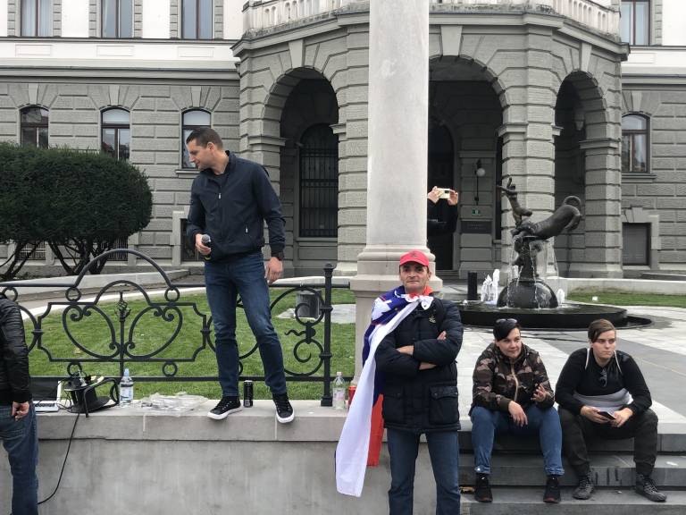18.00 - Slišati je pozive k vrnitvi nazaj na Trg republike pred parlament.