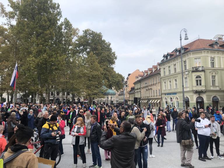17.00 - Protesniki ostajajo na Kongresnem trgu. Vzklikajo Lopovi. Nadaljujejo z govori.