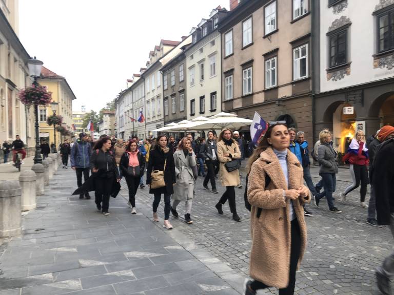 17.50 - Premik protestnikov proti Mestnemu trgu.