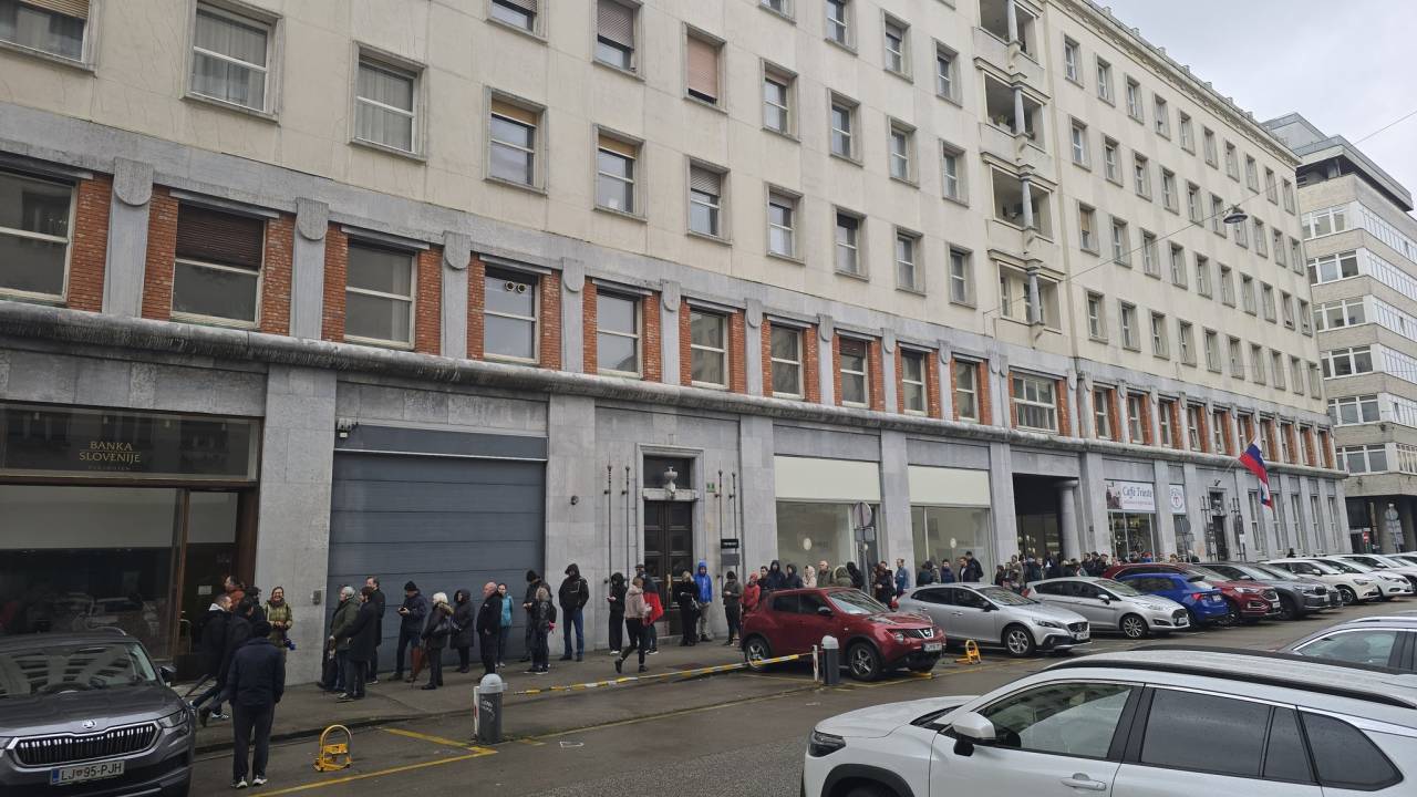 Že od jutra se je na Štefanovi ulici v Ljubljani pred Banko Slovenije vila dolga kolona ljudi, ki so čakali na nakup novih spominskih kovancev.