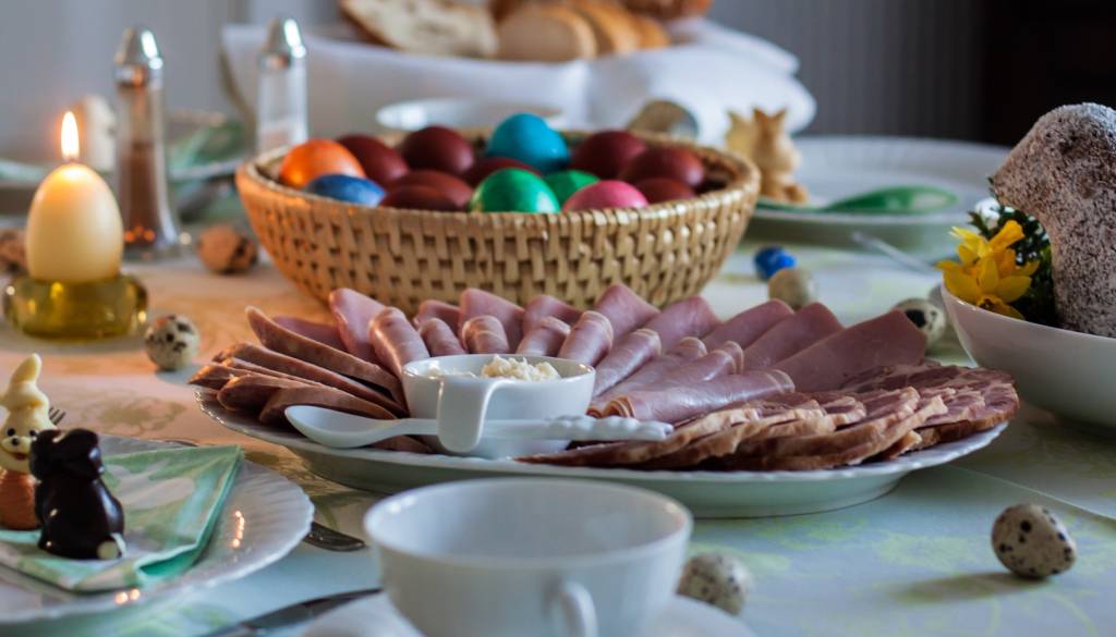 V Sloveniji imajo vse velikonočne jedi tudi svojo simboliko: meso simbolizira Kristusovo telo, rdeči pirhi simbolizirajo kaplje krvi, hren simbolizira žeblje, kruh in pecivo pa trnjevo krono.