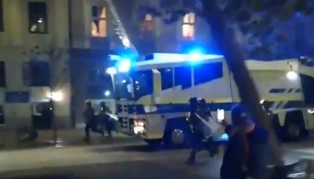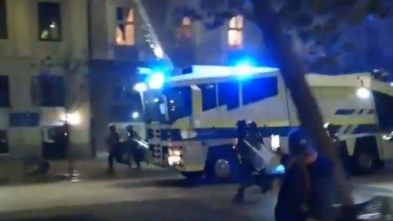 Policija je proti protestnikom uporabila tudi vodni top. Tega so nazadnje uporabili med protesti novembra leta 2012.