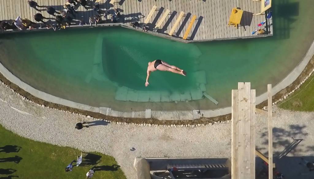 V Eco resortu v Godiču pri Kamniku so bili priča kar dvema ekstremnima skokoma z najvišje, kar 18 metrov visoke lovske opazovalnice v le štiri metre globok ribnik. Rekord je z atraktivnim skokom, dvojno salto in obratom, postavil Mariborčan Aleš Karničnik.