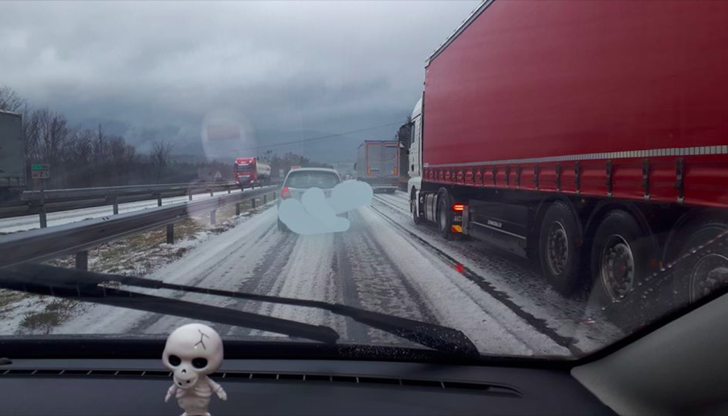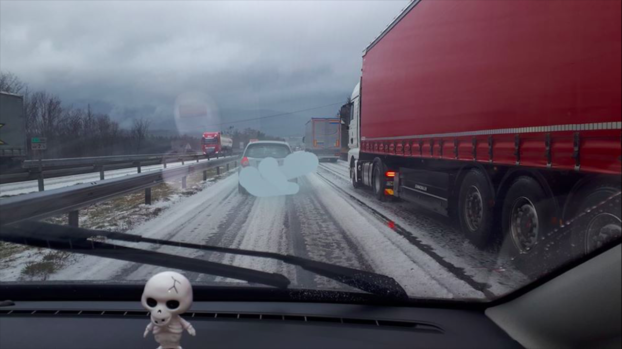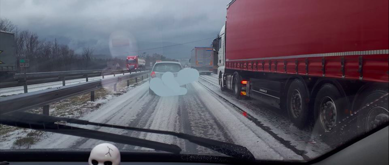 O snegu že poročajo iz Koroške, sodra je padala ponekod na štajerski avtocesti, o močnem nalivu s sodro poročajo tudi iz Slovenske Bistrice.