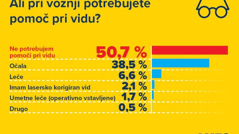 Kako se vozniki odzovejo na bleščanje žarometov nasproti prihajajočih vozil? Osem od desetih ob zaslepljenosti pogleda stran (37,1 odstotka) ali pripre oči (38,7 odstotka). 10 odstotkov anketirancev ob zaslepljenosti pomežikne, le šest odstotkov pa jih na bleščanje ne reagira.